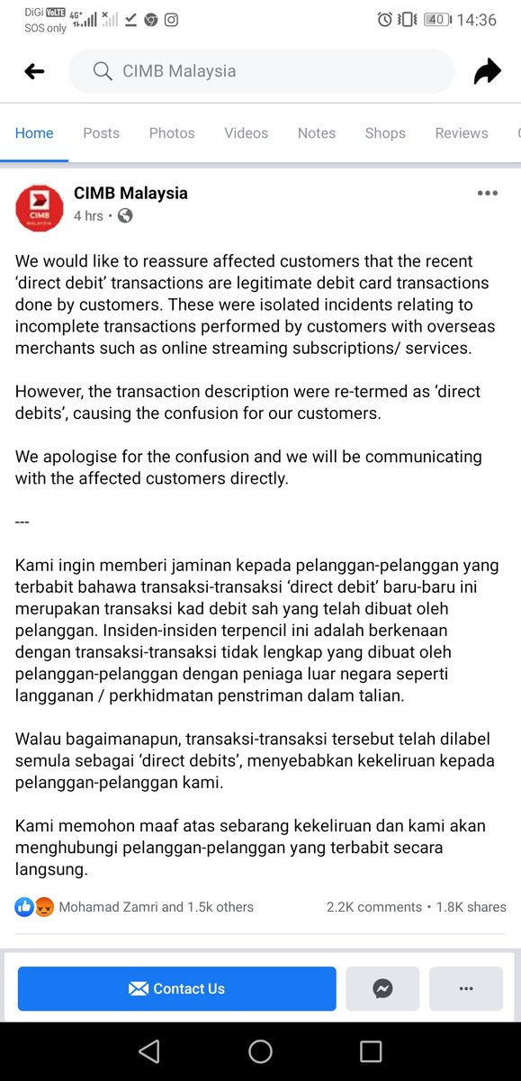 Naim Mustafa On Twitter Ini Penjelasan Cimb Malaysia Di Laman Rasmi Fb Mereka Isu Sekarang Ni Jika Customer Tak Sengaja Melakukan Pembelian Kepada Oversea Merchant Incomplete Transaction Kenapa Berlaku Kepada Cimb Sahaja Kenapa